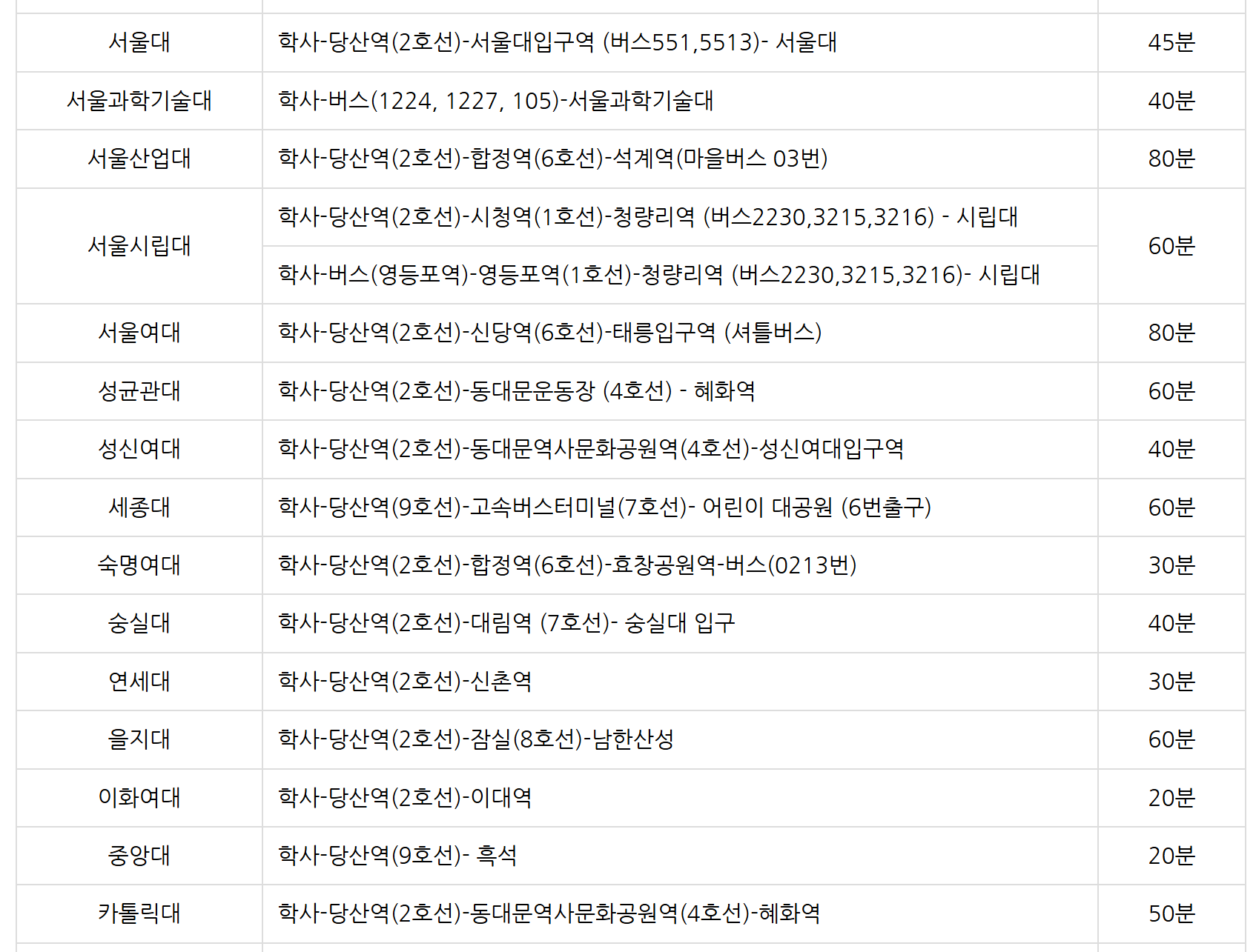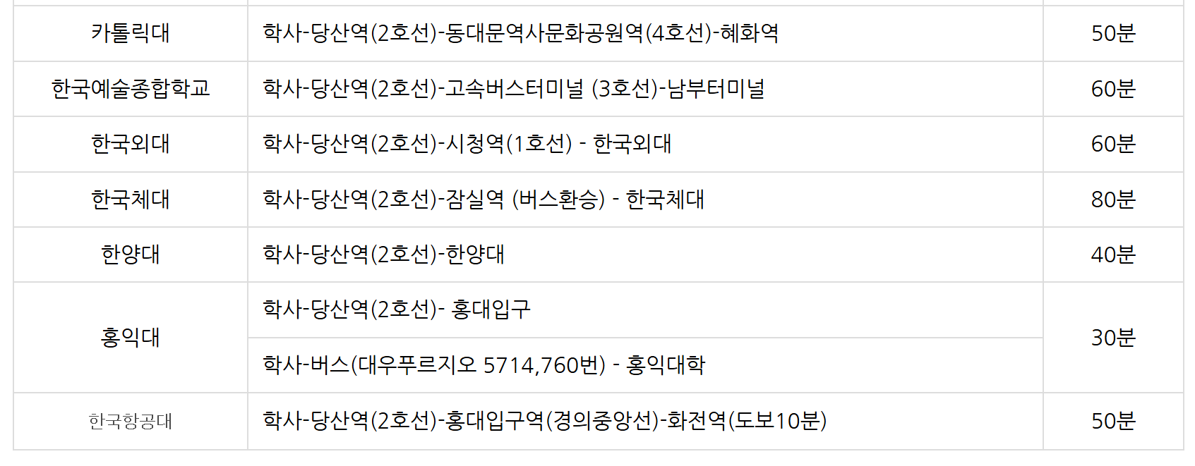 지하철 2. 9호선 당산역 및 5호선 영등포시장역 도보 10분 소요
