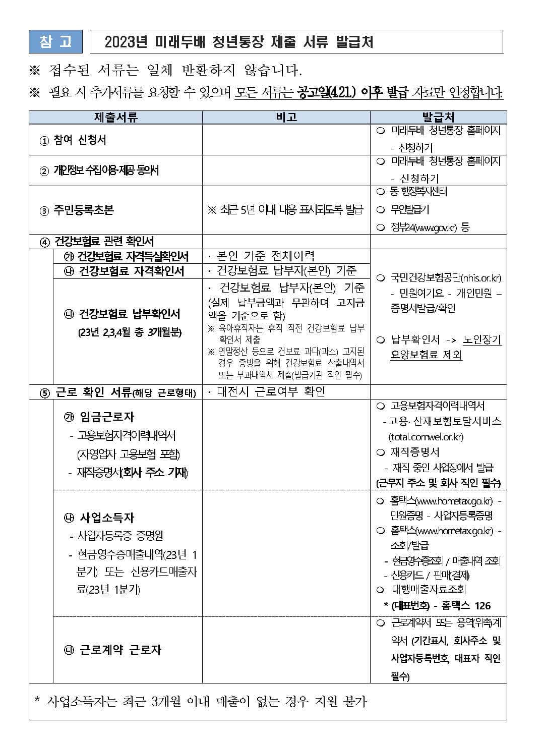 모든 서류는 공고일('23.4.21) 이후 발급된 자료만 인정됩니다