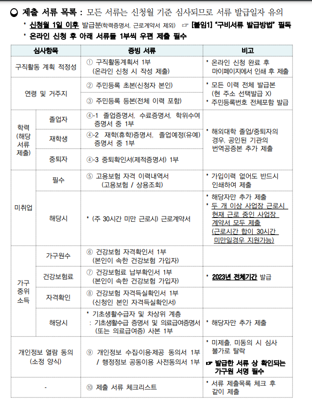 ☆근로계약서 및 학련 관련 서류를 제외한 서류는 7월 1일 이후 발급한 서류이어야 합니다