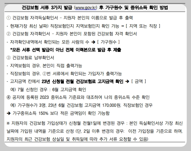 ♣ 건강보험 서류에서 가구원수 및 중위소득 확인 방법