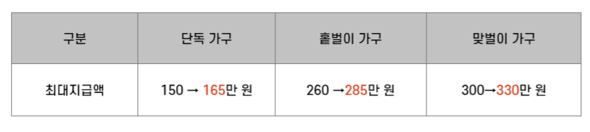 올해 신청분부터 재산요건을 완화하고 최대 지급액을 10% 상향함