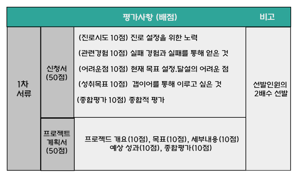 신청서(50점) + 프로젝트 계획서(50점) =100점