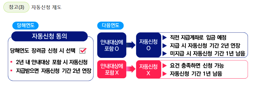 -60세이상 고령자 및 중증장애인이 장려금 신청기간에 동의하면, 향우 2년 내 신청안내 대상 포함 시 자동으로 신청이 됨